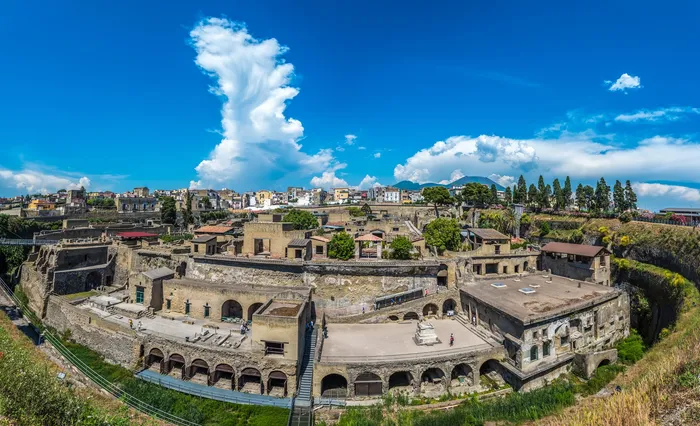 In Herculaneum, you will explore perfectly preserved Roman villas, including the famous Villa of the Papyri, with its exceptional frescoes and sculptures, the Villa of Neptune, and the Villa of Diomedes, renowned for its remarkably well-preserved mosaics.